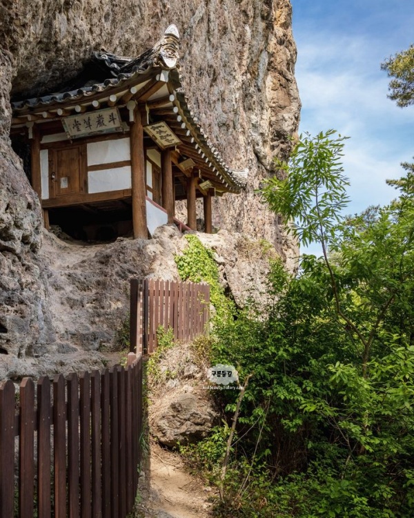 아찔한 절벽 사이에 위치한 작은 집이 신비롭고 아름다웠던 고창 가볼만한곳 베스트 10으로 생소한 풍경을 만날 수 있는 두암초당입니다. 두암초당은 부모가 돌아가시자 시묘살이를 했던 효암 변성은과 인천 변성진 형제의 지극한 효성을 기억하기 위해 후손들이 지은 정자입니다.